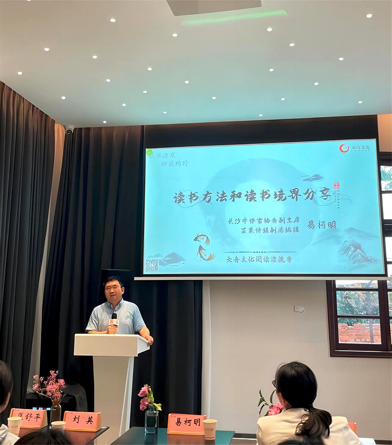 活动中,长沙市作协副主席、芒果超媒副总编辑易柯明为现场嘉宾带来了精彩绝伦的主题为“读书方法与读书境界分享”即兴演讲,他形象地阐述了预留给孩子的七种终身财富,同时分享了他所尊敬的三位师友遵循和推荐的“巡视读书法”、“织网读书法”、“观音读书法”等读书方法,手持湖南省政府参事、资深出版人龚曙光先生的《满世界》一书,阐述了自己“打擂读书法”的理念,现场妙语连珠、深入浅出、幽默风趣,引发了不少现场来宾的共鸣和思考。