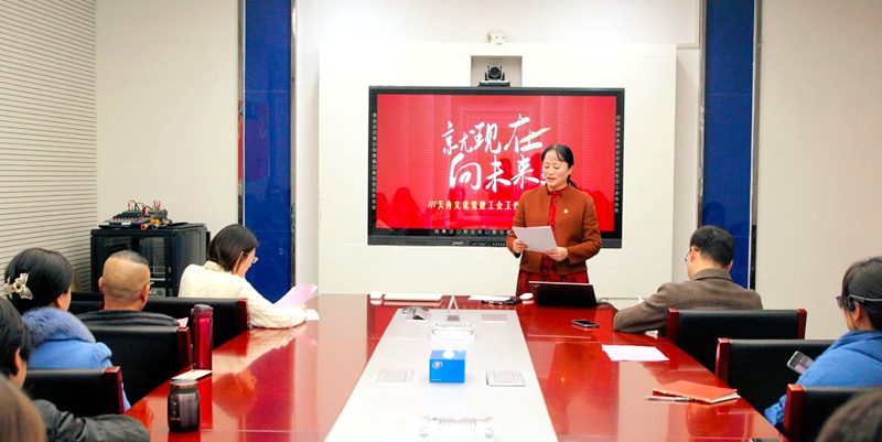 1月31日大年初十,天舟文化2022年度党建工会表彰总结会在公司会议室隆重召开。公司董事长兼总裁肖翛、湖南天鸿投资集团副总裁陈四清、公司常务副总裁喻宇汉、财务总监刘英、监事会主席匡舒平、全体党员及工会会员等40余人参加此次会议。