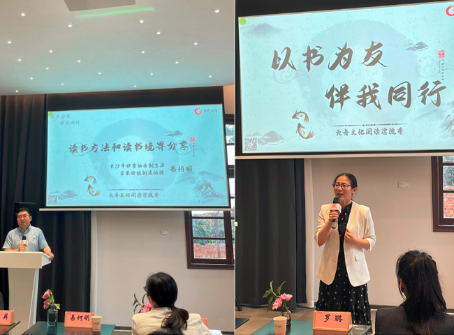 5月27日,天舟文化“以书为友伴我同行”阅读漂流季活动在长沙橘子洲头乐之书店隆重举行。本次活动由天舟文化股份有限公司主办,长沙市文创协会秘书长罗璐,市文创协会会员部部长朱含笑出席活动,长沙市作协副主席、芒果超媒副总编辑易柯明作为特别嘉宾应邀带来读书分享演讲。活动包含名家讲座、活动颁奖、阅读分享、现场互动及员工生日会等精彩环节,天舟文化50余名员工参加了本次活动。