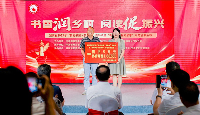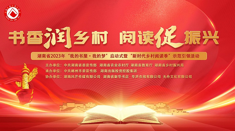 8月25日上午,湖南省2023年“我的书屋·我的梦”启动式暨“新时代乡村阅读季”示范引领活动在郴州书城隆重举行。本次活动由中共湖南省委宣传部、湖南省农业农村厅、湖南省教育厅、湖南省乡村振兴局主办,中共郴州市委宣传部、湖南出版投资控股集团承办,湖南风芒传媒有限公司、湖南新华书店集团、华声在线股份有限公司、天舟文化股份有限公司协办。